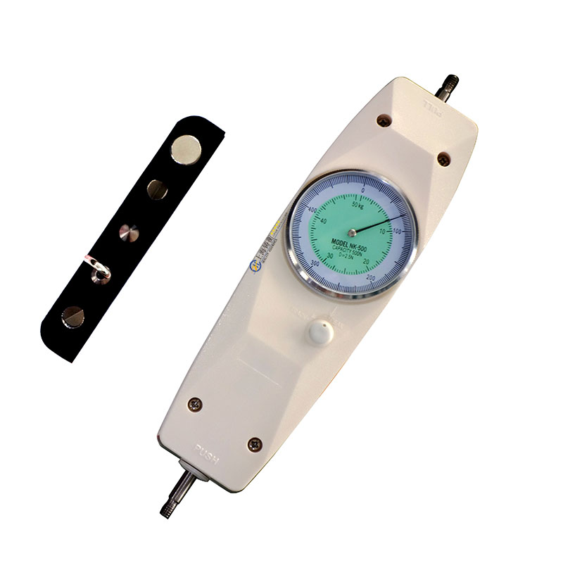 上海鑄衡生產的SGNK型指針式測力計是小型便捷式的拉力、壓力測試儀器,該指針式測力計不僅具有高精度、易操作、可同時顯示牛頓和公斤單位、捷帶方便之優點,而且有一個可作荷重峰值(PEAK)測試及連續荷重值(TRACK)測試切換使用的切換旋鈕(PEAK/TRACK鈕)。